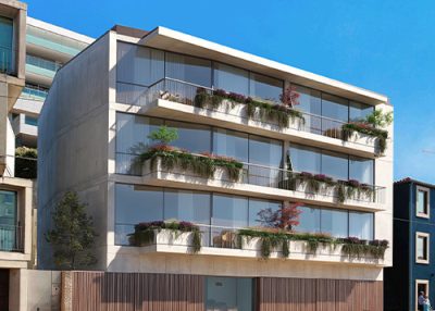 O edifício de escritórios surge como uma adição ao pavilhão inicial, ao qual se liga através de uma passagem generosa que concentra as circulações horizontais e verticais. Materializa-se num volume estendido de betão aparente, elevado sobre a zona de estacionamento que o serve.